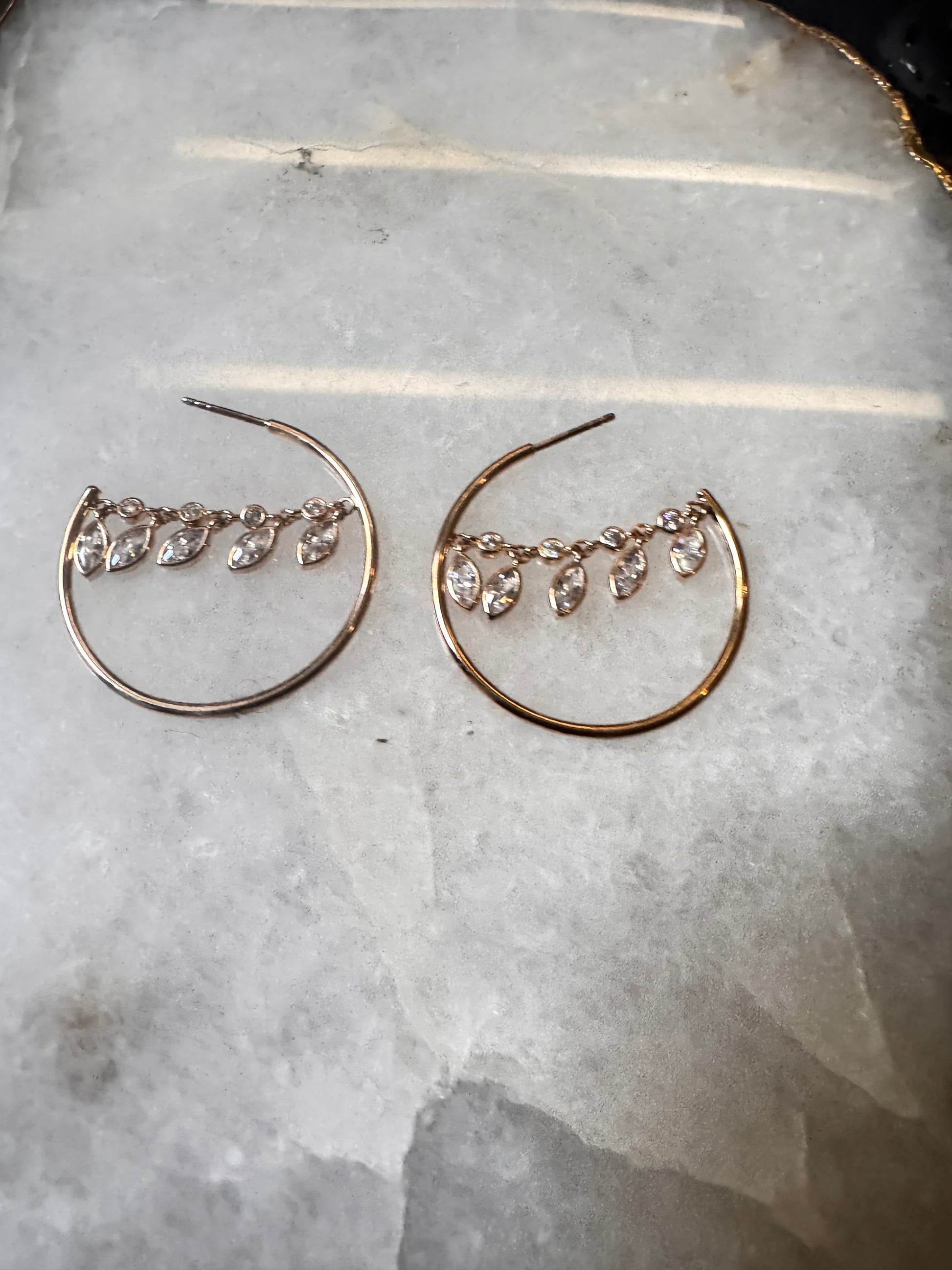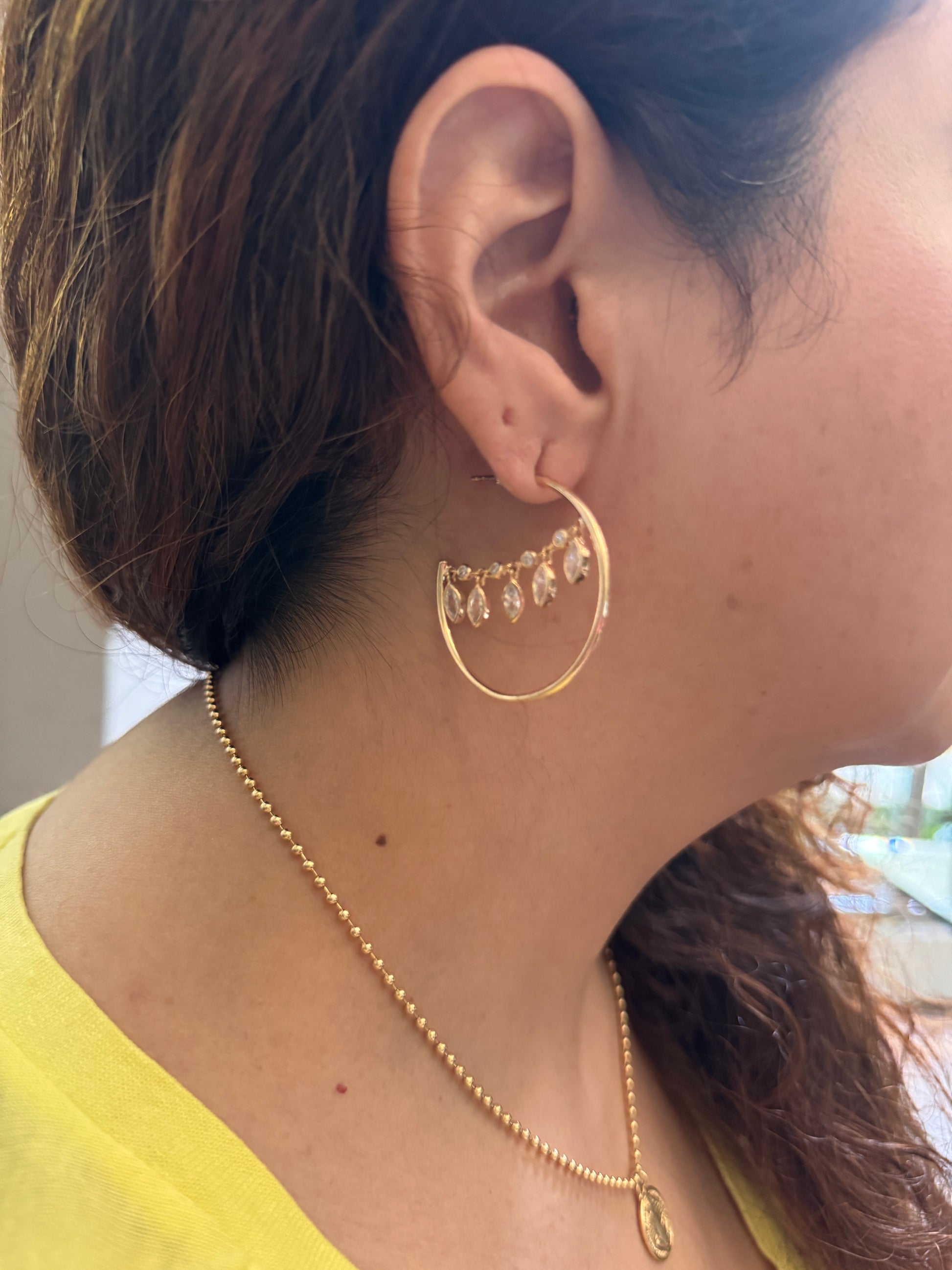 Argola leve com pingentes em cristais brancos no banho ouro 18k